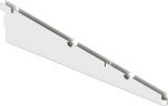 Несущий рельс имеет размер и изготавливается из прочной листовой стали. Он служит для крепления стоек, на которые, в свою очередь, фиксируют полки и корзины. Крепится к стене и является основанием для всей конструкции. Преимуществом навесной системы является возможность корректировать расстояние между направляющими, это упрощает процесс монтажа и позволяет исправить возможные ошибки и неточности. Монтирование происходит с помощью дюбелей и саморезов, размеры которых подбираются в зависимости от материалов стены.